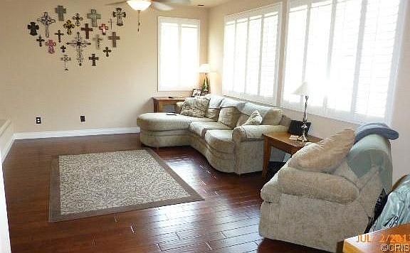 Spacious Canyon Ridge Home! 6 Bedroom, 3 Bathroom home with Curb Appeal & Amenities Galore! Beautiful Wood Flooring begins in the Entry and continues through Formal Living Room, Formal Dining Room, Family Room and Two First Floor Bedrooms. Family Room features Fireplace, Media Niche and Opens to the Kitchen. Kitchen has Travertine floors, 5-burner Gas Cooktop, Double Ovens, Walk-In Pantry, Recessed Lights, Eat-In Area and Built-In Desk. Kitchen's Sliding Glass Doors lead to the Patio and Backyard. Grand Staircase to Second Floor. Large Master Bedroom Retreat with Ceiling Fan. Master Bath with Two Separate Sinks & Vanities, "Makeup" Vanity, Jetted Soaking Tub, Glass Enclosed Shower, Water Closet and "His & Her" Large Walk-In Closets. Three Additional Bedrooms and Full Bath on Upper Level, as well as Spacious Multi-Purpose Bonus Room. Indoor Laundry Room complete with Sink & Ample Storage Cabinets. Neutral Paint throughout. Dual Zoned Air Conditioners and Attic Fan for efficient, economical cooling. Two-Car Attached Garage with 2nd roll-up door on Back of Garage for Easy Backyard Access and Boat Parking etc. A Definite Must See!