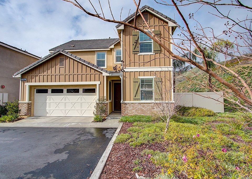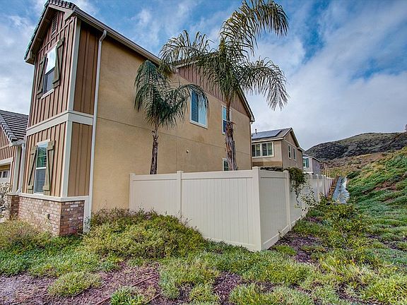 **PRICE REDUCTION** Beautiful Gated community, 4 Bedroom + 3 bath *1 bed & Full bath downstairs, River Village Home. Nice lot at the end of the cul-de-sac! No neighbors on one side with mountain views. This executive style home features a spacious open floor plan, plantation shutters, some ceiling fans, recessed lighting, and upgraded linoleum that looks like weathered gray wood. The kitchen offers stainless steel appliances, granite countertops, large pantry, large center island/ breakfast bar that looks into the family room. Upstairs you will find a landing area for small office space, full bath w/ dual sinks, laundry room, and 3 spacious bedrooms . The Master Suite offers a relaxing area with lots of windows, a large walk in closet, beautiful master bath with shower and separate tub and dual sinks. The wrap around Patio/backyard offers a built-in BBQ, Bar seating, Large water fountain, and lots of room to entertain around the Beautiful Fire-pit! This Gated community offers great access to both the 5 and 14 freeways, a community pool, playground and bbq area. Just minutes from shops, restaurants and award winning schools! LOW HOA!