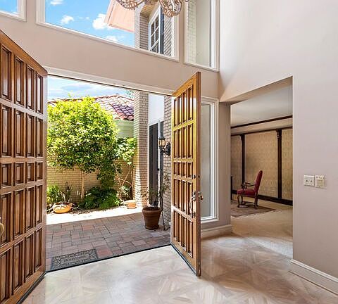 Welcome to the epitome of luxury living in the prestigious Mountaingate community of The Crown on Canyonback. This grand scale townhome lives like a single-family home offering comfort, convenience, and a serene mountain view that will enable you to relax from the moment you arrive. Offered for the first time in over forty years, a special opportunity is presented to make this wonderful property your own. Step into the two-story entry featuring hardwood floors and an elegant winding stairway. The double height living room with custom fireplace mantle and formal dining room look out to the rear patio and quiet canyon setting. The center island kitchen, breakfast room, and spacious den with full bath that can be easily transformed into a third bedroom suite, complete the main level. Upstairs there is a wonderful master suite with balcony and a sizable secondary bedroom suite. Situated on a wide, flat, well-lit street, indulge in leisurely strolls while basking in the tranquility of this exclusive neighborhood or embark on invigorating hikes along the adjacent trails that embrace you with the majestic beauty of the Santa Monica Mountains. Delight in resort-like amenities while engaging in friendly matches on the lighted tennis courts, rejuvenate your senses in the beautiful pool and spa, or simply immerse yourself in the lush grounds that surround you. The Crown on Canyonback boasts 24-hour on-site manned security patrol, HOA alarm monitoring, camera surveillance, and an enhanced virtual gate system, ensuring your peace of mind. The HOA provides the convenience of weekly trash can services, roof coverage, exterior paint maintenance, and immaculate common area landscaping. Enjoy easy access to the Westside's finest dining and shopping destinations, UCLA, iconic cultural institutions such as Skirball, The Getty Center, and the sun-kissed beaches that define LA living. Elevate your lifestyle further with a membership to the renowned Mountaingate Country Club, offering premier golf, tennis, pickleball, dining, and social amenities.