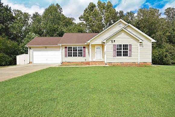 Fabulous 1-level home on cul-de-sac in S. Alamance. 3-BR/2-bath home on a 1.95-acre parcel w/ private rear patio overlooking wooded acreage. Fresh paint & new carpet. Spacious Family w/ gas log FP opens to Kitchen w/ breakfast & entry from the attached 2-car garage. Flexible Dining w/ HWs & door to rear patio. Master w/ in-suite bath & WI closet. 2 additional BRs w/ guest bath on hallway. Detached storage building beside garage. A true treasure!