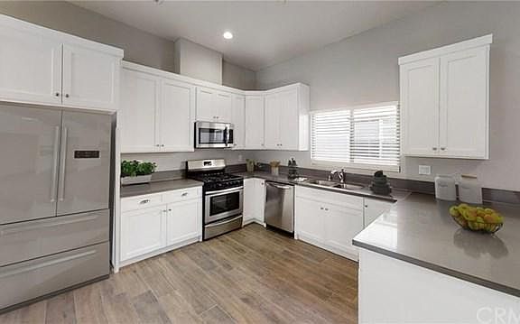 Updated single family home conveniently located on a quiet street, close to freeways, shopping and restaurants. This stylish home features 3 bedrooms, 2 bathrooms, 1408 SF, two car garage, and a fenced backyard. Open floor plan in the living and dining room. Kitchen has stainless steel appliances, quartz counter tops, ample cabinet space and newly tiled floor that opens to the living room. Two spacious bedrooms with vinyl plank floors, new mirrored closet doors and a full bath with laundry area are located along the hallway. The primary en-suite sits at the back of the house with access to the backyard through sliding glass doors. Backyard is a great space for entertaining, kids play area or your garden. The potential is unlimited!