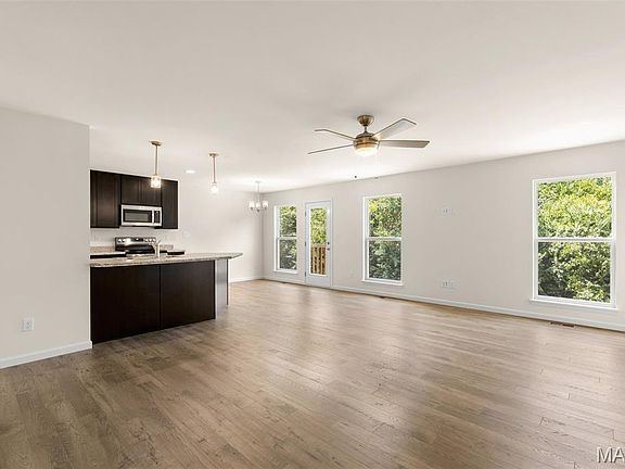 Open floorplanLinen closetSpacious family roomStainless-steel ge appliancesSecond-floor laundry roomCeiling fanWood laminate flooring