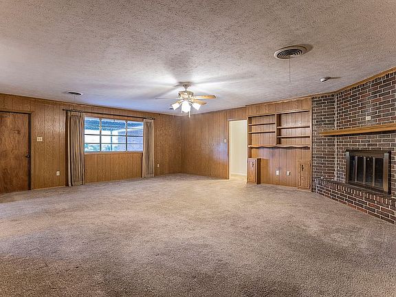 Living area has a wall of built-in cabinetry, a full brick fireplace with gas service, and overlooks the large covered backyard patio. A large laundry room with secondary access to back patio provides a mud room from the back yard and more storage. Master bedroom is very large and has double closets. Front bedroom is very large also and has double closets as well as private access to the front bathroom that boast lots of storage cabinets. Middle bedroom has a walk-in closet as well.