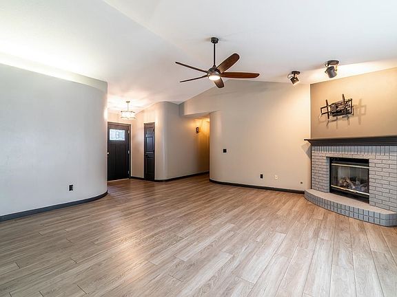 Immediate possession available! This immaculate home offers 3 bedrooms, 2 full baths, and an open-concept layout designed for modern living. Enjoy neutral tones, luxury vinyl plank flooring throughout, and abundant closet space. The spacious living room features a cozy gas-log fireplace, uplighting for ambience and rounded corners that enhance the open feel. A stylish kitchen with quartz countertops and a tiled backsplash flows seamlessly into the dining area — perfect for entertaining. All kitchen appliances are included. Relax in the fully enclosed back porch, or step outside to the deck and fenced backyard. The primary suite boasts trey ceiling, ceiling fan, twin vanities and a walk-in closet, while two additional bedrooms provides comfort and storage, both with ceiling fans. Both bathrooms have quartz vanity tops. With easy-care landscaping and a 2-car attached garage, this home is truly move-in ready.
