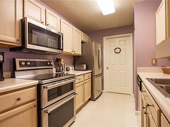 Spacious condo with large rooms. Living room boasts of cathedral ceiling and gas fireplace. Living room has french doors to private balcony. Kitchen open to living room and dining room. Laundry room off of kitchen with side door. Both over sized bedrooms have full baths and walk in closets. Detached one car garage directly across the street #30. Central location to shopping, public transportation and South Park. Move right in!