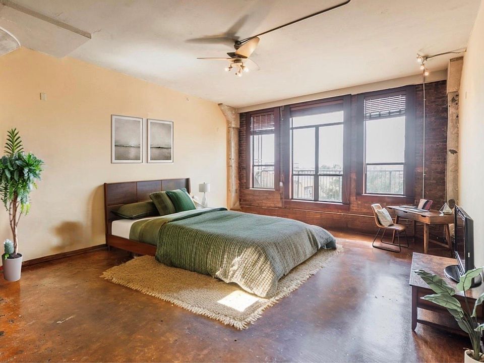Industrial loft style condo at Herrin Lofts, a historic 1929 building in EaDo! Unit boasts exposed brick walls, tall windows, high ceilings, stained concrete floors & private balcony. Kitchen offers SS fridge, granite counters, pantry & unique, open layout to main living space. Double vessel sinks & jetted spa tub/shower combo. Large walk-in closet w/full-sized W/D. Walkable to Shell Stadium, Daikan Park, George R. Brown, & local hot spots like Pitch 25, Little Woodrows, & 8th Wonder. Unit is on the 3rd floor which has the tallest ceilings in the building. Access to 3rd floor courtyard and outdoor kitchen is steps away. Courtyard was intentionally carved out from the original structure to build out balconies for each unit and offer a common area for residents. (1) Small storage on 3rd floor and (2) larger storage units on 2nd floor. Exercise room on 1st floor. Rooftop deck. (2) dedicated parking spots in controlled access garage. Minimum lease term of 30 consecutive days allowed.