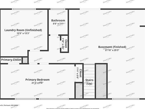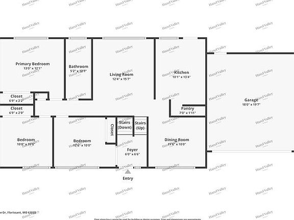 This split-level home in Florissant, MO offers a functional layout with four bedrooms and two bathrooms across 1,092 square feet. The main level includes a living area with wood flooring and access to both the upper and lower levels. The kitchen provides cabinet storage, counter space, and standard appliances.