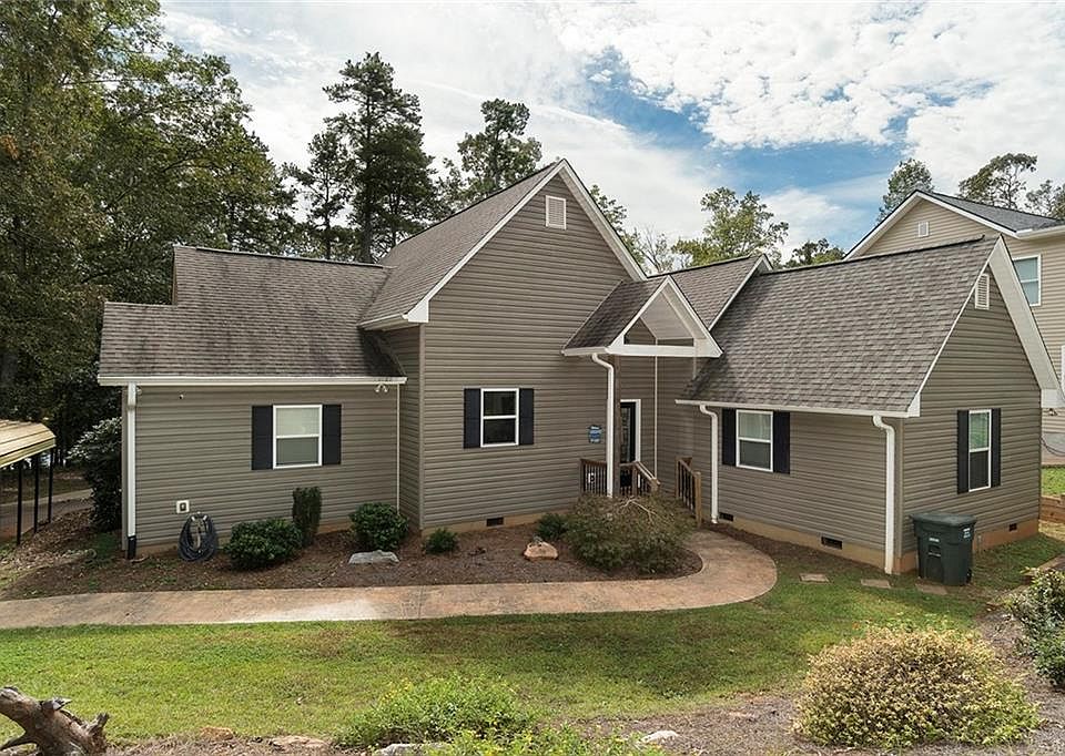 THE DOG DAYS OF SUMMER ARE OVER...Now it's time to enjoy the Fall lake views and crisp afternoon boat rides from this prime lake property. The home is incredible enough but the location alone is like a needle in a haystack being a stone's throw to Portman Shoals and a short boat ride to Clemson Univeristy. The highlight of DEEP water is deceived by the level lot with a concrete cart path to the max sized covered dock. The view back to the home is almost as stunning as the expansive lake view which are easily enjoyed by the wall of windows from the open living room and kitchen combination. This home was masterfully designed to enjoy the lake life with 2 master suites both with stunning views, 2 Guest Bedrooms and 3 full baths. The 4th bedroom doubles as a bunk room or bonus room. All rooms are anchored by the stunning great room to gather for entertaining and relaxing. This property has everything a lake buyer would want and it is all on one level with a relaxing yet designer decor which is included in the sale.