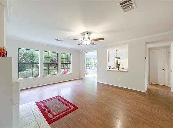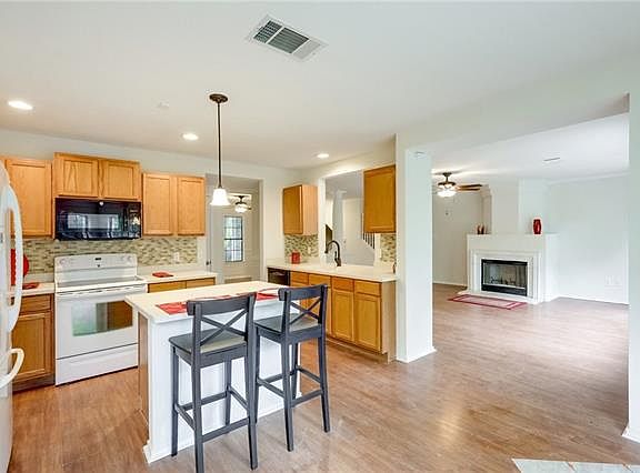 Spacious south Austin home features a shady front yard with mature trees and landscaping. Open floor plan with 3 living areas. Island kitchen with quartz counter tops, pantry nook table, lots of cabinets and counter space overlooks the family room with fireplace. Huge master suite with enough room for a sitting area, master bath has his and hers sinks and the master closet is enormous!! Spacious back yard, close to parks, schools and shopping.