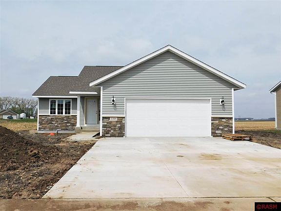Just completed rambler in newer Upper North Mankato neighborhood. This home has 2 bedrooms, and 2 full baths on the main level. Living room, kitchen and dining area are open concept. Contemporary colors and finishes. Quality construction throughout the home with solid oak doors, 2X6 exterior walls, spray foam insulation and maintenance free exterior. Basement is unfinished with potential for 2 more bedrooms, full bath and large family room. Or have the home completely finished by builder! Call to make this your new home today.