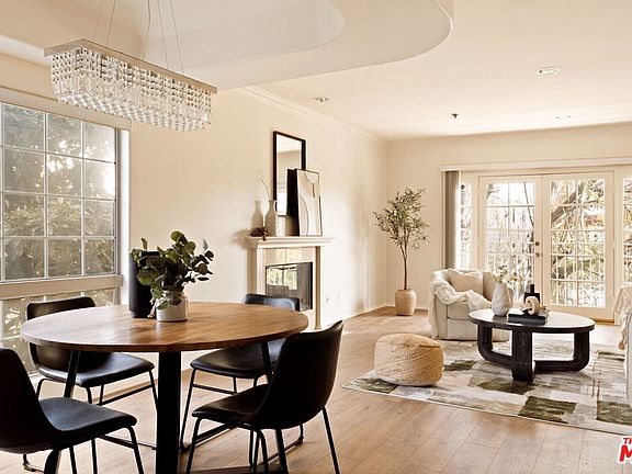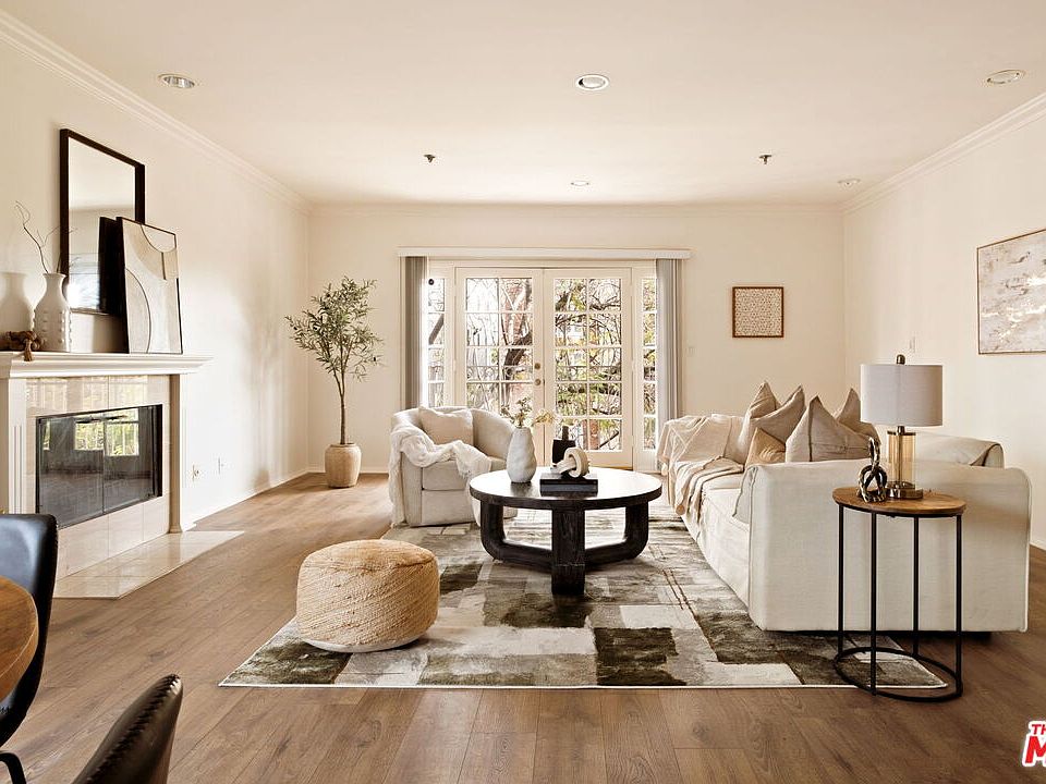Front-facing corner unit with only two residences per floor, offering exceptional privacy and a spacious, open living layout. This three-bed, three-bath condo is designed to maximize natural light and create a peaceful living environment, with spaces that do not share walls with any neighboring unit. A well-proportioned living room serves as the heart of the home, featuring a fireplace and French doors that open to a private balcony, allowing in soft morning light and views framed by mature greenery. Natural light flows freely, enhancing the wide-plank flooring and thoughtful design. Adjacent to the living area, the dining space is positioned under a statement chandelier that transitions into a recently remodeled kitchen. Outfitted with Quartz countertops, white shaker cabinets, and stainless steel appliances, the kitchen also features a deep farmhouse sink positioned beneath a large picture window. The sizable primary bedroom has its own fireplace, a walk-in closet, and an ensuite bathroom that includes double sinks, a soaking tub, and a separate shower. Additional features include in-unit laundry, central HVAC, and low HOA dues. Located moments from Westwood Village and Century City, this unit places you within reach of an array of premier shopping and dining destinations.