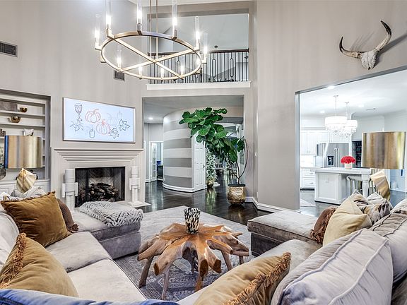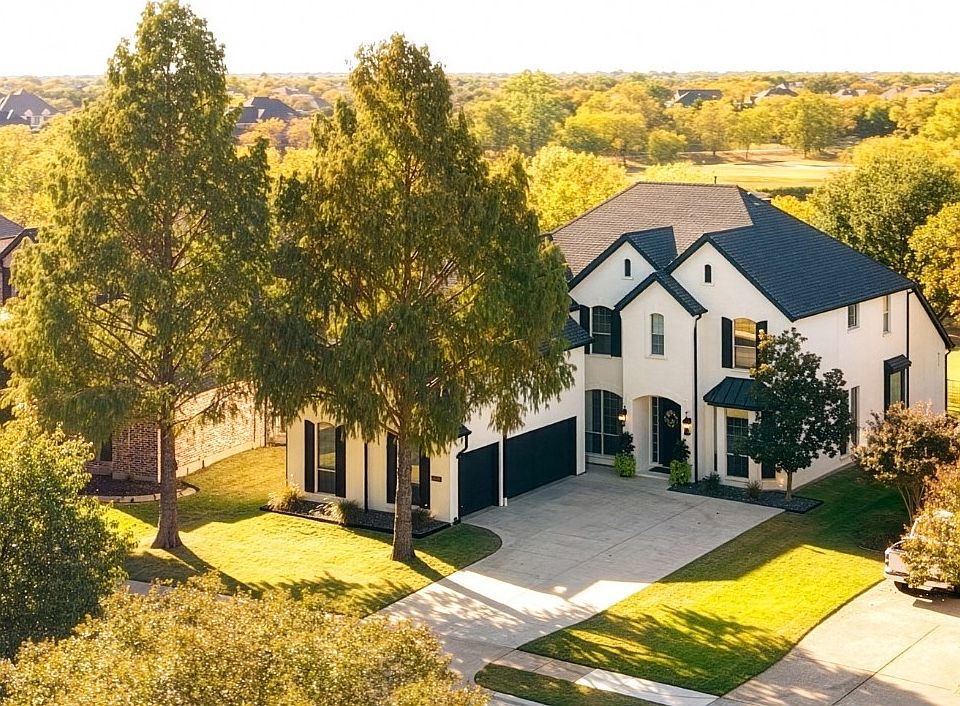 This is more than an upgraded home—it’s a masterpiece of modern luxury that truly checks every box including PANORAMIC SUNSET VIEWS on a GOLF COURSE lot in The Fairways Community, with Frisco ISD schools, a 3-car garage and an elevated living experience unlike anything else on the market. Every inch has been thoughtfully redesigned with exquisitely curated interiors and designer finishes. This home is perfectly positioned to showcase sweeping golf course views through its two-story living room windows and French doors opening to a fully covered outdoor kitchen, dining area and spacious living area with a travertine patio. Here, a see-through gas fireplace anchors the mature trees and backyard oasis, creating an inviting focal point for year-round entertaining and outdoor living accented by tranquil night time landscape lighting and framed by a serene tree-lined horizon beyond the picturesque fairways, creating a rare and treasured blend of seclusion and scenery that’s increasingly hard to find. The gourmet kitchen is bathed in natural light from abundant windows and features two 24” beverage refrigerators, wine storage, a spacious pantry, &sleek quartz countertops. The kitchen flows seamlessly into the living room, anchored by a custom oversized cast-stone fireplace that perfectly balances elegance with comfort. The main-level primary suite lives like a private luxury retreat. Remote-controlled shades and an updated spa-inspired bath complete the resort-style experience. Upstairs, you'll find 3 spacious bedrooms, a large secondary living area with a built-in counter & sink, an oversized media room with media equipment that conveys, and additional updated full bathrooms. Additional highlights include access to a community offering golf, walking trails, clubhouse amenities, a neighborhood pool, and a beautifully maintained environment. Located minutes to major roads, highways, and shopping as well as the new PGA Golf Course and Legacy Shopping Center!