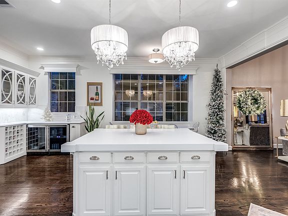 See-through gas fireplaceCustom oversized cast-stone fireplaceTravertine patioUpdated spa-inspired bathSleek quartz countertopsWine storageRemote-controlled shades