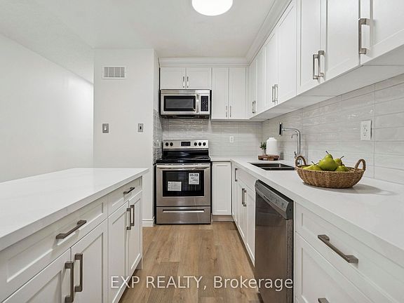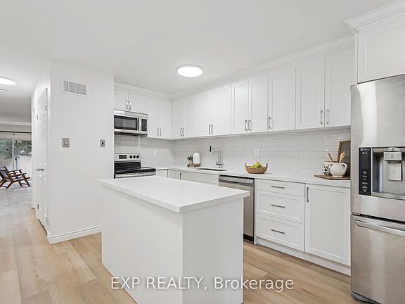 Nestled in Mississauga's desirable Erin Mills area, this beautifully cared-for, move-in-ready townhome offers the perfect balance of comfort, style, and community. Featuring 3 spacious bedrooms and 2.5 bathrooms, 1 car garage and 1 driveway parking and a fully finished basement. This home has been thoughtfully upgraded with $$$ spent on the Brand New Kitchen featuring custom cabinetry, stone countertops and an Island for extra counterspace. The kitchen extends into bright Eat-In/ Breakfast area which is as charming as is practical for a busy family. Whole house has been freshly painted in neutral color and all the flooring is upgraded to provide a warm and luxury living experience. The inviting living room showcases a cozy fireplace and walkout to a private patio with serene green views-perfect for your morning coffee or weekend gatherings. Upstairs, the Primary Bedroom features His & Her Closets and an updated Ensuite bath with a walk-in shower. The other Two Bedrooms are equally spacious and an additional 4 pc bath adds to the convenience for the family. The finished basement expands your living space-ideal for a home office, recreation area, or kids' playroom. Situated in a very quiet and family-friendly community, beautifully maintained and landscaped to create calming setting. Low condo fee includes access to a private community pool and park. Quick walk/ drive from great schools, UTM, shopping, dining, highways, and transit, this home offers a peaceful lifestyle with everything you need just minutes away.