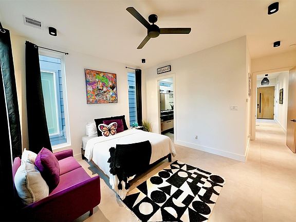 A beautifully designed 3-story space created with both comfort and style in mind. On the first floor, you’ll find an oversized tandem garage that stretches 15x51 ft, giving you 765 sq. ft. of covered space. It opens directly to your own private backyard, the perfect spot for weekend barbecues, kids’ playtime, or simply relaxing outdoors. Head upstairs to the second floor and you’ll be greeted by a modern-style kitchen with sleek, soft-close cabinetry and a spacious island. It overlooks the dining and living areas, so you can cook, chat, and entertain all in one open, welcoming space. The living room feels grand with its 22-ft ceiling and large windows that flood the space with natural light. Also on this level, the primary suite is your retreat — featuring tray ceilings and a spa-like bathroom with dual sinks, a soaking tub, and a frameless walk-in shower. The third floor provides roomy secondary bedrooms for family or guests, along with a private office.