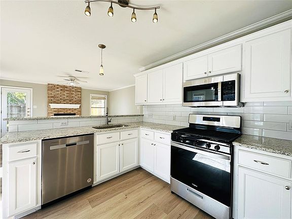 This beautifully updated two-story home in the established South Creek neighborhood is a must-see! Recent upgrades include brand-new vinyl flooring and fresh interior paint throughout, as well as new remote-controlled ceiling fans, water fixtures, and Quartz countertops in the kitchen and bathrooms. The kitchen overlooks the family room with a brick fireplace and has also been enhanced with a new tile backsplash, new stainless-steel appliances, and a new kitchen sink and faucet. The home boasts high ceilings in the formal living and dining areas. Upstairs, the Primary bedroom offers an en suite bath with a double vanity, garden tub, separate walk-in shower, and a spacious walk-in closet. The spare bedrooms are equipped with new remote-controlled ceiling fans, adding comfort and style to each room. The wood privacy fenced backyard has a storage shed for added convenience. This home is ideally located in Round Rock, just minutes from a neighborhood park, HEB Plus, Dell Diamond, Old Settlers Park, and more!