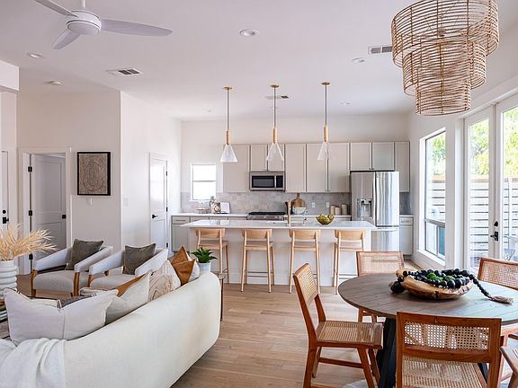 Thoughtfully appointed townhouse in a small modern community ideally located walking distance from several of South Austin's best restaurants, including Loro and ABGB. The unit is a short, 5 minute drive to town lake, I-35 and TX-71 and 15 minutes to Austin Bergstrom Airport, door-to-gate. The spacious living area features 10' ceilings and French doors that open onto a private, 200sq. ft outdoor patio that is perfect for entertaining and dining al fresco. Remodel of entire unit was completed in July 2023 and features beautiful white oaks floors, completely re-done bathrooms, and new kitchen applicances, lighting fixtures and center island. Primary bedroom features a large walk-in closet and an exceptionally updated bathroom, complete with a soaking tub. The kitchen features beautiful quartz countertops, consistent w/the contemporary aesthetic found throughout the home. Wide-planked white oak flooring adds a touch of elegance and modernity. Additionally, there's a utility room providing ample storage options. One of the standout features of this property is a privately fenced common area, offering an inviting space for additional outdoor entertaining or relaxation. A short wooden bridge leads you to a stunning quarter-acre green space. Here, you'll discover a clear water creek, a large fire pit, and an outdoor dining area, creating an enchanting atmosphere for gatherings & peaceful moments immersed in nature. To top it all off, this townhome includes a two-car garage, providing secure parking and extra storage options. With its prime location, contemporary design, and an array of features, this is an exceptional property that encapsulates the best of Austin Texas's vibrant living. Tenant responsible for utilities. Owner willing to entertain offers for lease terms in excess of 1yr.