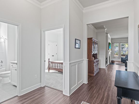 Welcome to this Azalea in full bloom. This like-new home has clean lines and harmonious proportions that mirror the Azalea's elegant beauty. 2205 Water Front is a captivating one-story that weaves modern luxury with the tranquility of suburban charm. As you step inside, you're greeted by a spacious foyer adorned with wainscoting that opens into an open floor plan, seamlessly connecting the dining area and family room with the kitchen and breakfast nook. The 14-ft ceilings and crown molding throughout the home enhance the sense of space and luxury. The family room features a warm gas fireplace that sets the stage for memorable family moments. The heart of this home is undoubtedly the kitchen. It's a chef's delight with an enormous island, perfect for elaborate meal prep or casual dining. The granite countertops, stylish tile backsplash, and stainless steel appliances blend functionality with modern aesthetics. This home offers three generously sized bedrooms and two full bathrooms, thoughtfully designed with a split bedroom layout, ensuring privacy for the primary suite. The primary suite is a serene retreat, thoughtfully designed with all the essentials for a comfortable and peaceful living experience. Step outside to the covered back porch and enjoy the beauty of nearly half an acre of a flat, well-maintained lot. The west-facing porch provides sunset views and receives ample afternoon sunlight, ideal for evening relaxation and entertainment. Innovative smart home features include a smart doorbell, front door lock, garage opener, and thermostat, offering convenience and security at your fingertips. Additional highlights: A spacious 2-car garage. No city taxes! It is close to the new Fuquay Varina Community Center (15 minutes) and the upcoming Beech Bluff County Park (4 minutes). 2205 Water Front is more than a house; it's a lifestyle choice for those seeking a blend of modern amenities and peaceful living. Take advantage of the opportunity to make it your new home.