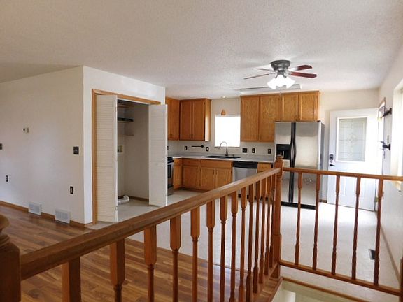 Spacious Two bedroom 1 bath main floor living includes main floor laundry. Light filled main floor has new hardwood look laminate flooring and a freshly remodeled main floor bathroom. Front entrance deck and side patio area off the living room. Basement level of this home offers 2 additional bedrooms (1 non egress), office space, bonus area, family room with walkout, 2nd bathroom with walk in shower. Exterior is nicely landscaped and backyard includes some raised planting areas, flower beds and garden shed will stay. Seller offers a $1,000 paint allowance with acceptable offer.