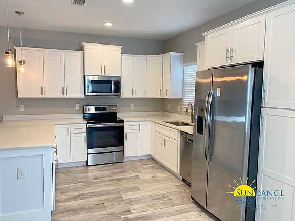 - Exterior features: 3 Bedrooms 2 Bathrooms, Driveway parking, Flooring:Tile/Carpet, Full Eat-In Kitchen, Fully Fenced Backyard, HVAC: Central Electric, Hurricane Shutters, Lift Station, No Smoking Permitted, Pets max 2 may be accepted with a $300 per pet non-refundable pet fee (Subject to Owner Approval), Primary Suite: Dual Vanity, Primary Tub/Shower Combo, Quartz Countertops in Kitchen and Bathrooms, Stainless appliances, Trayed Ceiling, breakfast bar
