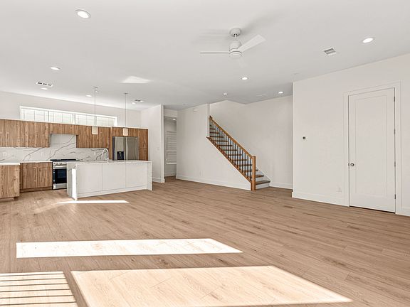 Designer finishesOpen floor planWood-topped stairsTurfed rooftop patioStainless steel appliancesDining areaSpacious flex space
