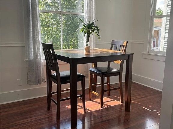Inside, you'll find large windows and high ceilings that fill the space with natural light. Thoughtful modern updates include brand-new appliances and central heating and air conditioning, while original hardwood floors, decorative fireplaces, and historic architectural details preserve the home's authentic charm.