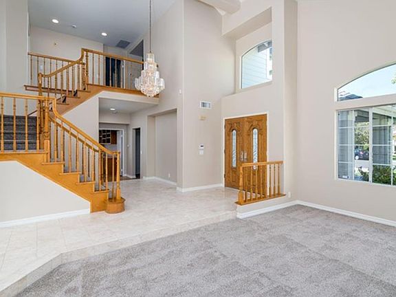Available NOW! Outstanding River Ridge two story home with 3304 sq ft. Not far from River Ridge Golf Club. Community Pool, Spa and Tennis Court! 4 large bedrooms and 3 full luxury granite Bathrooms. There are TWO family rooms! Very light and bright throughout. Stunning Living Room with two story ceiling and gas fireplace. Gourmet Granite kitchen with center island and all stainless appliances. Appliances provided are: refrigerator, dishwasher, trash compactor, microwave, oven, stovetop and washer, dryer. Huge Family Room off open kitchen with brick fireplace. Downstairs there is one bedroom for an office with built in shelves and desk. Upstairs there are 3 large bedrooms and another Family Room with cathedral high ceilings. Romantic HUGE Primary Suite has high cathedral ceiling and a gas fireplace. Luxury Primary Bathroom has relaxing spa tub, large separate shower and granite countertops with two sinks. Large walk in closet. Luxury Laundry Room with granite counters, sink and washer,dryer. Private fenced yard on greenbelt. Large entertaining patio. Built in gas barbeque and center island for great parties and entertaining. Gardener included. Tenant pays all utilities. HUGE 3 car garage and large driveway. May consider a small pet with extra $500 security deposit. Very good credit is required for each adult occupant. Community Pool, Spa, Clubhouse and Tennis Courts. Call Robin Lacks/ Four Seasons Properties/ Broker Dre Lic #00628505 Very good credit is required for each adult occupant. Available Now.