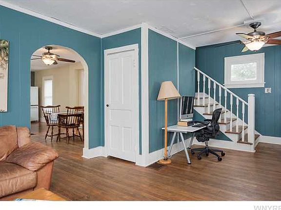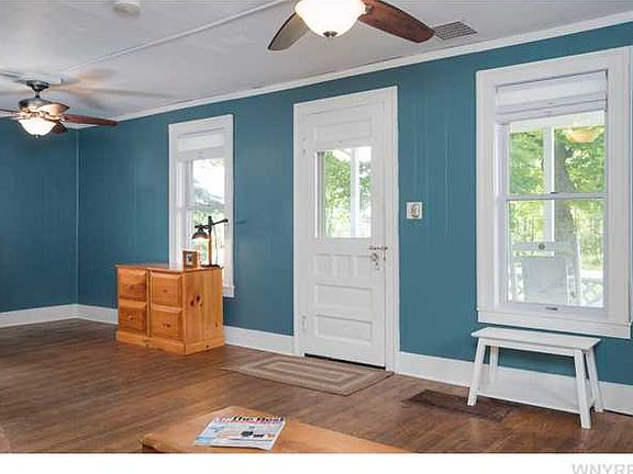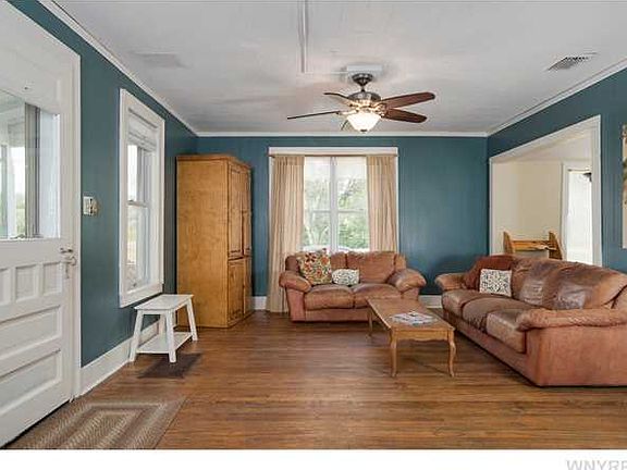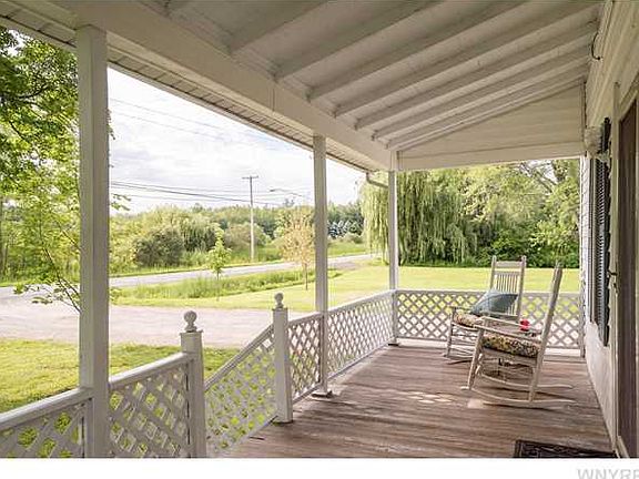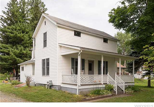 On 13 acres with pasture & wooded lot. Beautifully remodeled open floor plan. Updates include: new eat-in kitchen with island, new appliances, walk in pantry with prep counter. New 2nd floor bathroom with tiled shower, claw foot tub & radiant floor heat. Hardwood floor & forced air. 2014 whole house humidifier & 2013 water softener. 20X60 outbuilding, rear patio & large front porch! Tree house with slide & sandbox. Ever-bearing strawberry bed & two young apple trees. Alden schools.