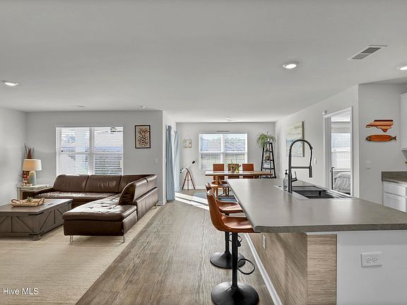 Built in 2023, this immaculate 3BR/2BA home in Sidbury Station offers 1,653 sq ft of modern living with a bright open floor plan, a kitchen island with oversized stainless steel sink, and stainless steel appliances. Enjoy peaceful pond views from the covered porch with ceiling fan, and relax in the fenced backyard. The 2-car garage features a sleek epoxy floor—perfect for parking, storage, or transforming into your own garage getaway or hobby haven. Community amenities include a pool, clubhouse with workout facilities and a golf simulator, pickleball and basketball courts, and walking trails—all in the heart of friendly Castle Hayne!