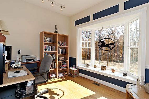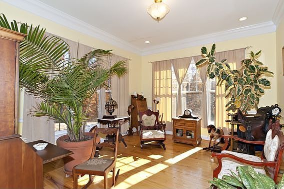 Open & airy custom home w/ random width hardwood flooring throughout first floor, high ceilings, big windows, open kitchen w/ granite, office, sun room, fireplace & wet bar. Owner's suite has wonderful bath w/ 2 person walk-in shower, heated floors, lots of closets & a sitting/exercise room. Property offers a 4 stall barn & fenced paddocks. Huge deck overlooking private backyard for entertaining.