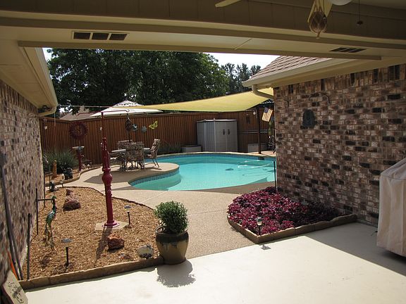 VERY CLEAN ONE STORY IN OAKRIDGE Community. Open Kitchen Features Composite Granite Counter Top with Italian Glass Back splash. Nice kitchen nook with built in china cabinet. Game room has Wet Bar and wired for TV/internet/cable. Dining room has large windows with high ceiling. Living room is great wood paneling and large beautiful fireplace (wood or gas). Bedrooms have ceiling fans and wired for TV and internet. Large Master bathroom with jetted tub and double vanity. New 30 year roof, new gutters and all new outside paint completed Nov. 2012. Has great 10,000 gallon in-ground saltwater pool with nice cedar cabana by pool. House is setup for Gas stove and dryer if wanted. Property has been very well cared for.