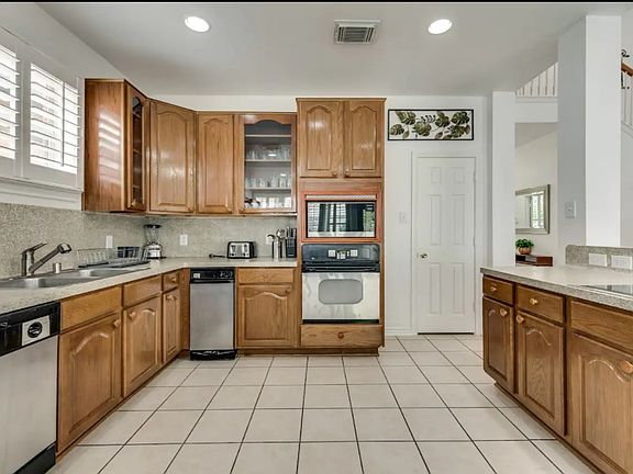 dining room windows face the backyard. Master Bathroom has a salon bath with jacuzzi tub. Front yard is enclosed by a 6ft white iron fence. There mature trees at the front of the house. High Efficiency brand new Carrier HVAC equipment installed May.