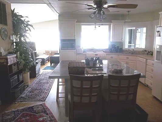 Lovely newly updated manufactured home features 3 Bed, 2 bath, large open kitchen w/island & dining and living rooms. Copious amount of cupboards & cheery skylight. New Quartz counter tops, cabinets, floors & paint and all new appliances. Primary bed has 2 walk-in closets. Vaulted ceilings in the living room. Convenient ramp for wheelchair access. Space rent $720.00 5 pools, 2 clubhouse rooms at park. Buyer must apply and be accepted at park after offer is accepted, app fee at park is $50 each.