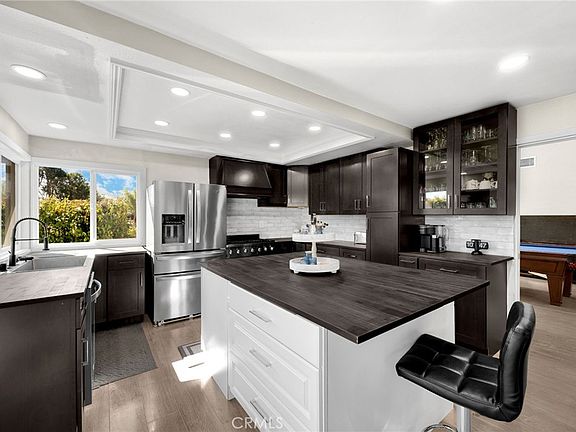 BEAUTIFUL, SINGLE-STORY home on a cul-de-sac in Fullerton! This home features a bright and open floor plan with 4 bedrooms and 2.5 bathrooms with 2,699 square feet of spacious living space with a 3- car garage. You are welcomed at the entry into the LARGE sunken living room that has plenty of natural lighting, vaulted ceiling, recessed lighting, cozy fireplace and is adjacent to the large formal dining room which makes it great for entertaining. The beautifully designed kitchen features plenty of cabinetry for storage, professional NXR gas range with range hood, stainless steel appliances, kitchen island and has views of the beautiful backyard. The family room features a vaulted ceiling, plenty of windows for natural lighting, and a wet bar with cabinetry. The Primary Bedroom Suite includes double door entry, vaulted ceiling, a LARGE bedroom area with fireplace, private patio area, double sink vanity, soaking tub and sauna. Additional bedrooms with plenty of closet space and beautiful full-sized bathroom down the hall. Fourth bedroom is currently being used as hobby room. Low maintenance backyard features patio area, mature landscaping, firepit area, swim spa with TV overhead and has City Lights view. Additional features of the home include a 3-car garage, Solar panels to save on your electricity bills, greenspace with walkways, plenty of parking and quiet neighborhood. This home is centrally located and is close to dining, shopping, entertainment and is a WALKING distance to Cal State Fullerton, and close to Fullerton College and downtown Fullerton. Come view this beautiful house and make it yours today!