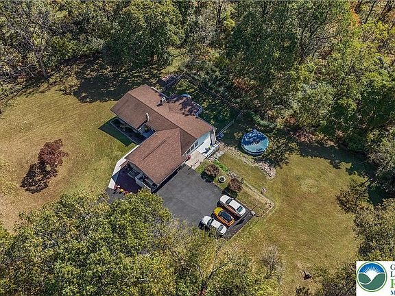 This California style home situated on a private tree lined 2.45-acre lot is not your typical ranch style home. As you procced through the double entrance doors you find yourself in a large sun-drenched foyer that is large enough to house a money saving coal stove. Proceed into the flexible great room that features a cathedral ceiling with exposed beams and floor to ceiling windows. The great room can be utilized as one large living room or split into a living room and dining room. Proceed through the patio doors to find an expansive deck that wraps around the majority of the home and overlooks a peaceful wooded area. The kitchen has been refreshed and includes an adjacent eating area that houses the enclosed first floor laundry. Three bedrooms all with hardwood floors and 2 full baths complete the first floor. The lower walk out area is bright and sunny and includes a family room with classic wood burning fireplace and two additional finished rooms plus a powder room in the utility area. The patio doors in the family room lead to large covered concrete patio that offers plenty of privacy and a relaxing hot tub. The oversized two car garage has a cathedral ceiling for ample storage. This location is peaceful and features plenty of flat cleared areas for outdoor activities plus undisturbed wooded areas that serves a refuge for wildlife, yet you can walk to schools, and you are close to shopping amenities and all major routes. Hard to find this combination of home and lot.