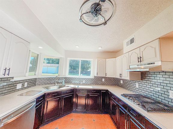Nestled in the tranquil Roman Forest neighborhood of New Caney, TX, 2206 Roman Forest Blvd offers a harmonious blend of classic charm and modern amenities. This meticulously maintained 4-bedroom, 2.5 bathroom home spans 2,400 sq. ft. and is set on a generous 0.71 acre lot, providing ample space for both relaxation and entertainment. The home boasts a large family room, complemented by built-in bookshelf and desk and a cozy wood-burning fireplace, creating an inviting atmosphere. The expansive kitchen is designed for both functionality and style, featuring abundant counter space and cabinetry, ideal for culinary enthusiasts and hosting gatherings. The primary bedroom includes an expansive walk-in closet, vanity space and a luxurious en suite bathroom with granite counters, offering a private retreat. Step outside to discover a serene, fenced backyard adorned with mature trees, an in ground pool with a jetted sitting area, and a storage shed.