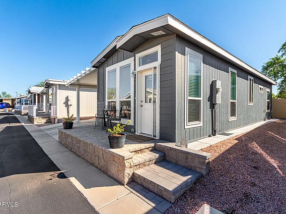 Seize the chance to own this charming 2-bedroom mobile home in the adult Community of Monte Vista Village Resort! You're welcomed by a practical carport and an inviting front patio for enjoying morning coffee. The serene living room features high ceilings, a soothing palette, blinds, and attractive wood-look flooring. The well-appointed kitchen comes with staggered white cabinetry with crown moulding, recessed lighting, stainless steel appliances, a pantry, and an island with a breakfast bar for quick meals. The main bedroom includes a private bathroom and a walk-in closet. The Community boasts a vibrant clubhouse, tennis courts, refreshing pools, and more! Don't miss out on this one!