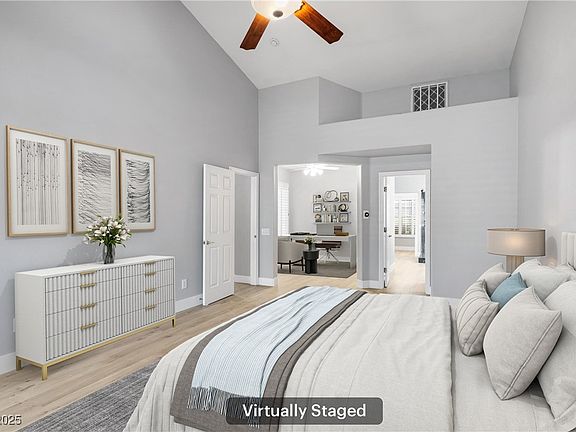 Sparkling poolCovered patioRemodeled primary suitePrivate backyard oasisVaulted ceilingsOpen floor planCozy fireplace