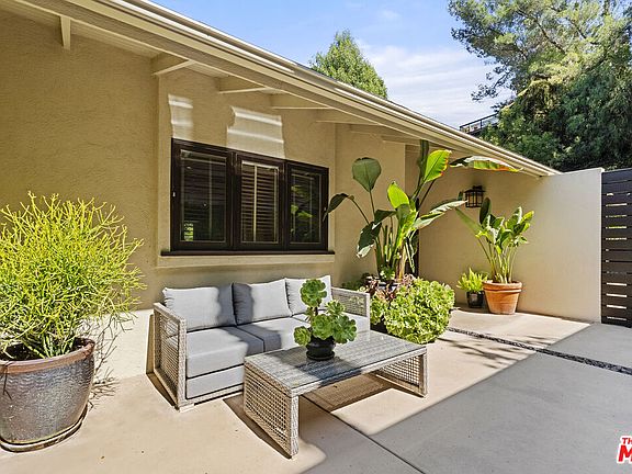 This absolutely beautiful, light filled, one-level home sits just behind the coveted Laurel Hills neighborhood and Mulholland Tennis Club. The location features the wide streets that everyone loves and easy access via Mulholland and Laurel Canyon. It's perfectly sited above the road with privacy and lush canyon views. Enter through an expansive gated courtyard that takes you to the covered front door and formal entry.... that entry flows into the stunning open plan interior with wood-burning fireplace and walls of glass. The home underwent a comprehensive renovation and features wonderful finishes inside & out. At the driveway you're greeted by a solid wood carriage house garage door and inside you have wide plank flooring, wood exterior doors, dramatic skylights, paneled walls and thoughtful built-ins. A perfectly appointed chef's kitchen with moveable island & seating is where everyone will want to hang out with the host. The inviting outdoor areas connect seamlessly with the kitchen & great room...with a pergola covered lounge area and an additional al fresco dining area. The yard has so much room and so many possibilities and it encircles the house...add a pool, lawns, vegetable garden or more. There's room for it all. Direct access from the garage with security system, video cameras and it's wired for music with built-in speakers. Just minutes from either Studio City or the Sunset Strip. Currently configured as 2 bedrooms. 3rd bedroom was opened up to expand the main living area.
