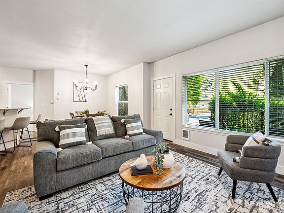 Fall in love with this beautifully updated, ground floor condo in the desirable Palisade Park community, right in the heart of DuPont. The welcoming front porch greets you as you enter the spacious and open concept living room. A fully remodeled kitchen features newer cabinetry, counters, and appliances. The large primary bedroom has an en-suite with walk-in shower and attractive finishes. You won’t find another DuPont condo with this many updates! All appliances stay including full size washer & dryer, making this home truly move-in ready! Attached garage and low maintenance living at its finest! Quick access to town center for restaurants and shopping, trails, I-5 and JBLM. Inquire with friendly LA with any questions!