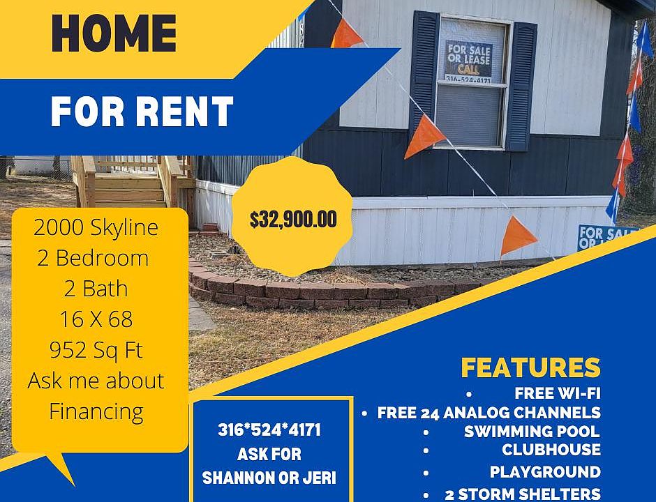 Lot W86 - Are you looking to downsize, are you an empty nester, needing a craft room, home office, play room, game room or just a little extra storage; this charming 2 bedroom 2 bath is a craftsman's dream, large kitchen, lots of counter space, cabinets & a pantry that you can easily fill with all of the nearby shopping. Let's bring you HOME TODAY Our AMINITIES ARE THE BEST: FREE Dish Gig Enabled Wi-fi, 24 Analog Channels, Amazing Swimming Pool, Playground that the kidos will love, a Basketball Court as well as 2 storm shelters, one on each side of the park. Give us a call to set up a tour today: See you when you come home :) *Financing Available* (Ask Me About Triad) SPECIALS Free Lot Rent For 3 Months (Ask Me How) FREE Lawn Service (Ask Me How) Application Fee WAIVED (Ask Me How) One Month FREE Rent (Ask Me How) ONLY 1 SPECIAL PER HOME :D Each Application MUST have: I.D. MUST be valid w/legal last name 3 most current pay stubs for each applicant Proof of any additional source of income such as child support or any source of Social Security Physical proof of Social Security Card for verification proof ONLY as we do not keep copies $25.00 Non refundable app fee per Adult (NO CASH ) If possible, Employment Verification letter from employer Qualifications: 2+ years positive rental history 2+ years steady employment NO evictions w/in the last 2 years MUST pass criminal background check (No felonies, no bad checks, no registered sex offenders no assault charges & no harm towards children) No aggressive breed dogs (Management MUST approve ALL Pets) No past due utilities W/letter of explanation, applicant may request further review if some guidelines cannot be met APPLICATION CAN TAKE 48 HOURS OR LONGER After turning in Application, You put down $500.00 to hold the home, if approved $500.00 is applied to move in, if Denied, your $500.00 is returned to you, if you are accepted & you reject the offer, you DO NOT get your $500.00 back. 2 cars per home are permitted (due to space limitations) On the 13th of every month Electric, water, sewer & trash are added onto the lot rent. Gas is in the renter's name.