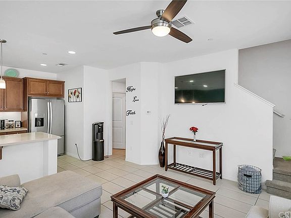 True pride of ownership is seen throughout in this turnkey home. The home features an open floor plan with plenty of natural light and is filled with charm! There are upgraded cabinets in the kitchen and both full bathrooms. The entire downstairs, all 2.5 bathrooms, and the laundry room have stunning custom tile flooring. Leading the way to the bedroom areas are the carpeted stairs. The rest of the home has wood laminate flooring throughout the upstairs bedrooms and loft area. The kitchen has a large center island with two pendulum lights, quartz counter tops, and recessed lights are featured in the kitchen, family room and loft area. The master bedroom suite features a large walk in closet, a master bath with double sinks & huge shower enclosure. There are two additional large bedrooms and a full bathroom upstairs along with a spacious loft area. There are ceiling fans in the family room and all three bedrooms. Experience resort style living in this tastefully decorated home which is move-in ready. Located in a prime location in the heart of Santa Clarita in the gated community of River Village. Enjoy easy access to both the 5 and 14 freeway, shopping, schools and parks.