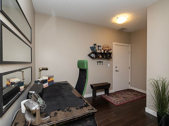 TOP FLOOR LIVING in Aspen Meadows! This 943 sqft 2 bedroom + office, 2 bathroom condo in the desirable community of Larkspur offers a bright, open-concept floor plan perfect for modern living. Featuring rich dark hardwood floors, white cabinetry, stainless steel appliances and large windows that fill the space with natural light, this home blends style and comfort. The kitchen offers ample counter space and a breakfast bar, opening to the living area—ideal for entertaining. The spacious primary suite includes a walk-through closet and private ensuite, while the second bedroom, full bath, and dedicated office provide excellent flexibility. Enjoy the convenience of in-suite laundry, underground parking, and access to great building amenities. Close to shopping, dining, schools, and with quick access to the Whitemud, this location is perfect for easy city living!