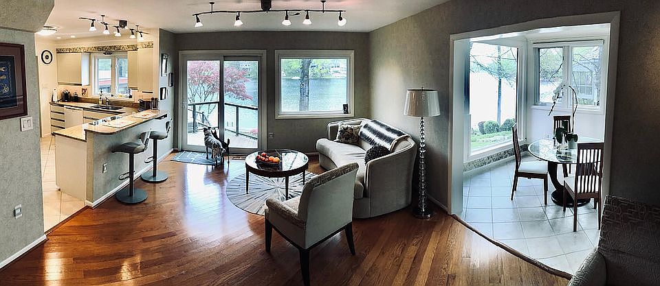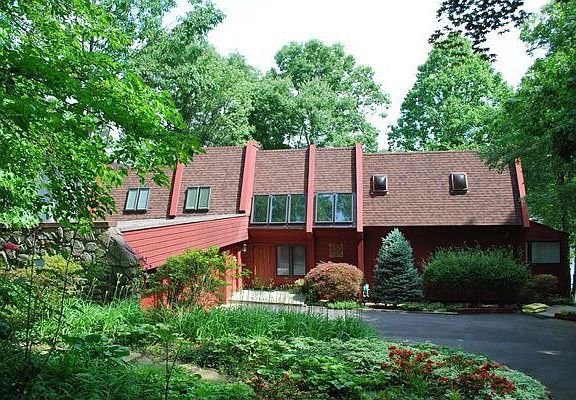 This custom designed house is reminiscent of Frank Lloyd Wright design with clean geometric lines and direct sun exposure from sunrise to noon through sunset. Floor-to-ceiling glass windows wrap around the lake to allow for a full experience of Lake Audubon from the warmth and comfort of the interior. A large German-engineered deck with glass windows and rails overlooking the lake allow for gracious entertaining. All manner of flora and fauna abound in this 3/4 acre wooded lot. Roy Mason* architect custom designed house 4400 sq ft, 4 bdrms, 5.5 baths, 2 fireplaces, 3 car garage, on a 3/4 acre wooded lot. https://en.wikipedia.org/wiki/Roy_Mason_(architect) Roy Mason, futurist architect, was popular in 70’s and 80’s for forward-thinking concepts; he introduced computers and automation into his Xanadu homes. Mason also favored the concept of computer automated homes which he demonstrated in his Xanadu homes with Bob Masters. Mason invented architronics, which was exemplified in his Xanadu House near Disneyland. The Xanadu was a protype of a smart home, with a control center in the family room, lightning control, automatic temperature control, sound-proof and computer-equipped work and study stations, kitchen software for cooking and shopping lists (the 'Robutler'), and a plan to create a fridge/microwave to store and cook food, preprogrammed music playlists selected according to the family mood.