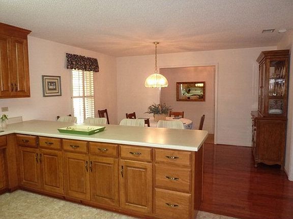 This 3/2 brick ranch is clean as a whistle! Architectural details include tray ceilings in the living room and master bedroom. The spacious kitchen is open to the dining area and family room. With a split floor plan the master offers privacy from the other two bedrooms. Plantation shutters offer a nice designer touch. From the family room with the built in shelving, the french doors open onto a nice sunporch. The backyard is fenced and has two large storage buildings. In the front, the circular driveway makes for a nice entry for guests, while the large garage lends storage for the homeowner. There's also an extra large utility room in the garage that could hold a freezer and more. Neutral colors throughout will work with any decor. The roof is only two years old!