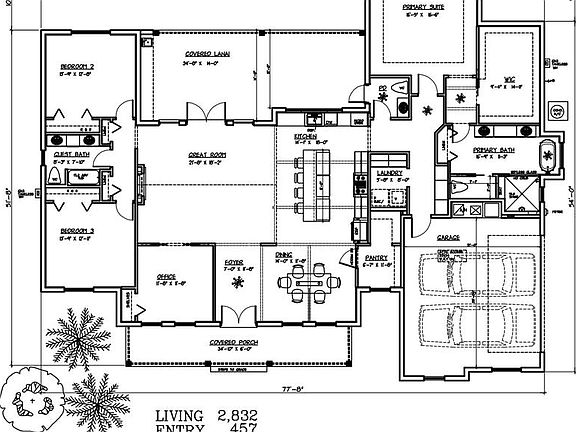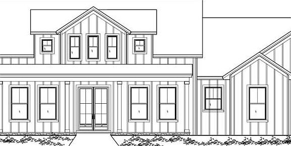 Floor to ceiling windowsFlexible officeTwo additional bedroomsSpa-like bathroomGable peaksExpansive open-concept floor planWhite board-and-batten siding