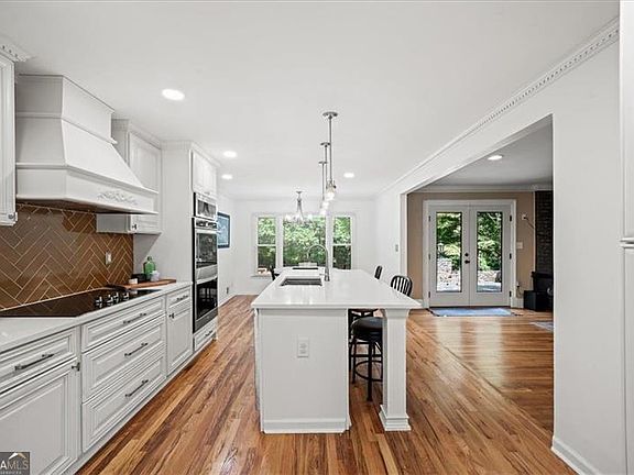 Primary on Main + Finished Terrance Level on 1/2 Acre - Four sided Brick Traditional with both charm and modern updates in The Forest at Smoke Rise. This stunning 5-bedroom, 4.5-bath with primary bedroom on main features, gleaming hardwood floors, newer windows and doors, and an open-concept layout ideal for entertaining. The renovated kitchen features quartz countertops, stainless steel appliances, and ample cabinetry, seamlessly flowing into the family room with a cozy fireplace and views of the expansive, fenced backyard complete with a stone patio, basketball court, and room to garden or play. The main-level primary suite boasts an oversized spa-like shower and walk in closet. Upstairs you have 4 spacious bedrooms with large closets, hardwood floors and lots of light! The fully finished basement includes a kitchenette, full bath, home theater, large recreation room, gym, a walk out to the side yard and abundant storage- perfect for guests or multi-generational living. All situated on a large, flat half-acre lot that provides exceptional privacy and serenity in this coveted neighborhood.