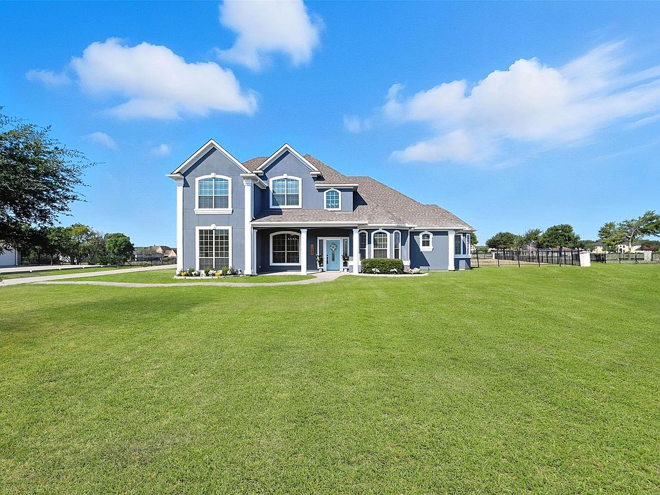 Welcome to this beautifully updated luxury home situated in a large cul de sac. This home offers the perfect blend of modern comfort and timeless style. The main level offers an open concept floorplan with new flooring, fresh paint, and updated fixtures throughout. The chef's kitchen features new stainless steel appliances, granite countertops, and custom cabinetry. Ideal for both entertaining and everyday living. The spacious living room features a fireplace and flows seamlessly into the dining area, making gatherings effortless. Retreat to the large primary suite with a spacious ensuite bathroom featuring a soaking tub, walk-in shower, and seal vanities. Four additional bedrooms and a movie room provide ample space for guests, a home office or an extra playroom. Outside, enjoy you private yard with room to relax, garden, or play. The covered front and back porches add farmhouse charm and a place to unwind after a busy day. Conveniently located near schools, shopping, and major highways, this property offers the perfect balance of peaceful living and accessibility. Don't miss you chance to own this stunning, fully updated home that feels brand new!