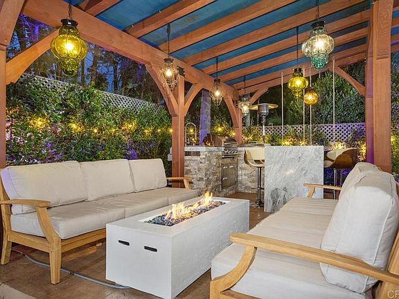 Completely customized & updated throughout, absolutely turnkey, move-in ready for ideal SoCal coastal life. Step into the allure of Spanish-inspired elegancy of indoor/outdoor living, over $375k in impressive renovations completed in October 2024. Presenting a rare opportunity to own in the highly sought-after, gate-guarded private Cardiff community of Sandy Point. Resting on a large corner lot, step inside this California Hacienda style residence to the welcoming impressive arched custom double-doors, opening to a dramatic 2-story grand ceiling foyer with center-piece hand-blown glass chandelier, with Phillips Hue controls. This inviting 5-bedroom (2 on the GROUND FLOOR), 3-bathroom home centers around the well-appointed kitchen boasting high-end appliances, 6-burner Wolf range, Zephyr hooded vent, Miele dishwasher and KitchenAid wine cooler plus reverse osmosis drinking water filter system. The connecting family room features a custom fireplace & mantel, vaulted ceiling and views of the beautifully landscaped backyard. Also 2024-built deluxe entertainers back yard with custom covered outdoor kitchen starring built-in Bull BBQ, Lion 2-burner cook top, Lion combo deep sink/insulated ice cooler, 2 firepits, imported hand-blown glass light fixtures with feature-rich remote control lighting array which emits glistening lights creating a relaxing ambiance, SONOS sound system and stunning waterfall Blue Calcita Dolomite stone countertops. The entire yard is an oasis surrounded by lush plants creating a private, soothing and tranquil resort feeling. Back inside the home, upstairs we have 3 additional bedrooms and 2 full baths. The new spa-inspired primary bathroom, completed in October 2024, features a resort-style oversized shower with Custom Starfire Glass enclosure, wall/wand/rain triple shower heads, luxe soaking tub, custom couture large walk-in closet, skylight and jumbo backlit mirror. The home includes central AC, an owned SunPower 13-panel 5.46kw solar system, 200-amp main panel, Tesla car charger, owned RainSoft whole-house water filter & softener plus Clean Start laundry system. This desirable gated neighborhood is perched on one of Cardiff's highest points, live "on vacation" at the community pool/spa/clubhouse with panoramic ocean & sunset views. There is also a central lagoon/park/gazebo. Sandy Point is surrounded by the 77-acre San Elijo Lagoon Ecological Reserve Trail Network. Abundant nature abounds through pristine protected canyon habitat. Find yourself totally removed from the outside world the moment you enter the gates of this extraordinary community. Conveniently located near the area’s best beaches, hiking, restaurants and shops, only minutes away.
