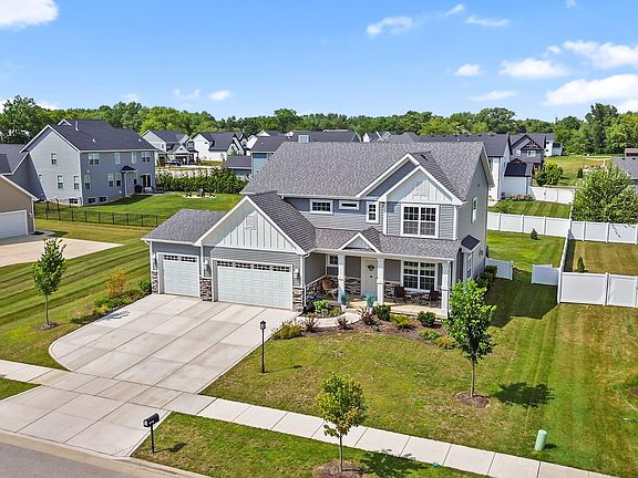 **Reduced by 10k & now listed at 70k below recent appraised value** Welcome to Hawthorne North! This 2-story home with a finished basement is only 2.5 years old! A great covered front porch welcomes you home. Upon entering, the soaring 18ft ceilings in the living room with a fireplace make quite the first impression! This room is open to the kitchen and dining areas, offering a great spot to entertain. You'll love the breakfast nook with built in seating & the massive walk-in pantry! Through the sliders you'll find an oversized patio w/ a pergola and privacy fenced back yard w/ a storage shed. Just off the oversized 3-car garage is a spacious mud room/drop zone. An office/5th bedroom and a half bath round out this level. Upstairs you'll find the primary bedroom with an electric fireplace, huge bathroom with dual sinks, a custom shower & soaker tub and a big walk in closet. This level also boasts 3 more spacious bedrooms, a full bath and a centrally located laundry set up! Need more space? Follow me to the recently finished basement. A large L-shaped rec room with an egress window well & a bar with a mini fridge offers a great spot to hang out with friends. An exercise room with a closet (possible 6th bedroom) & a full bath offer a great place for out of town guests. There are 2 huge closets & a 15 x 15 room for tons of storage! There is a TON of house here for the money & this location a hard to beat!